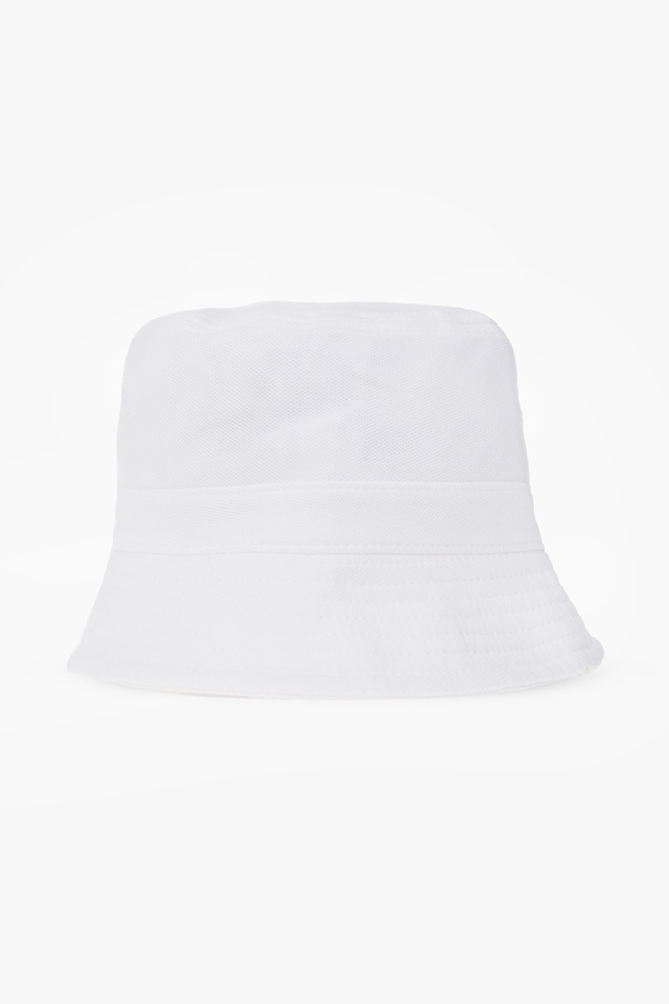 White bucket hat from Lacoste. Crafted from cotton, this item features a logo patch for brand recognition.