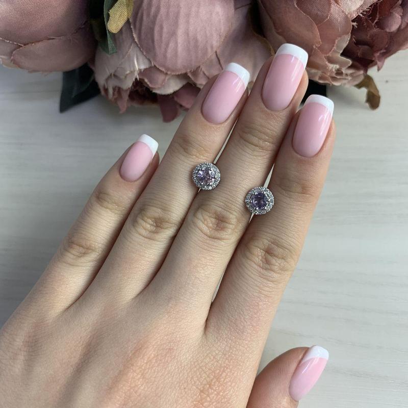 Родированые серебряные серьги 925 пробы с натуральным аметистом. Родированные