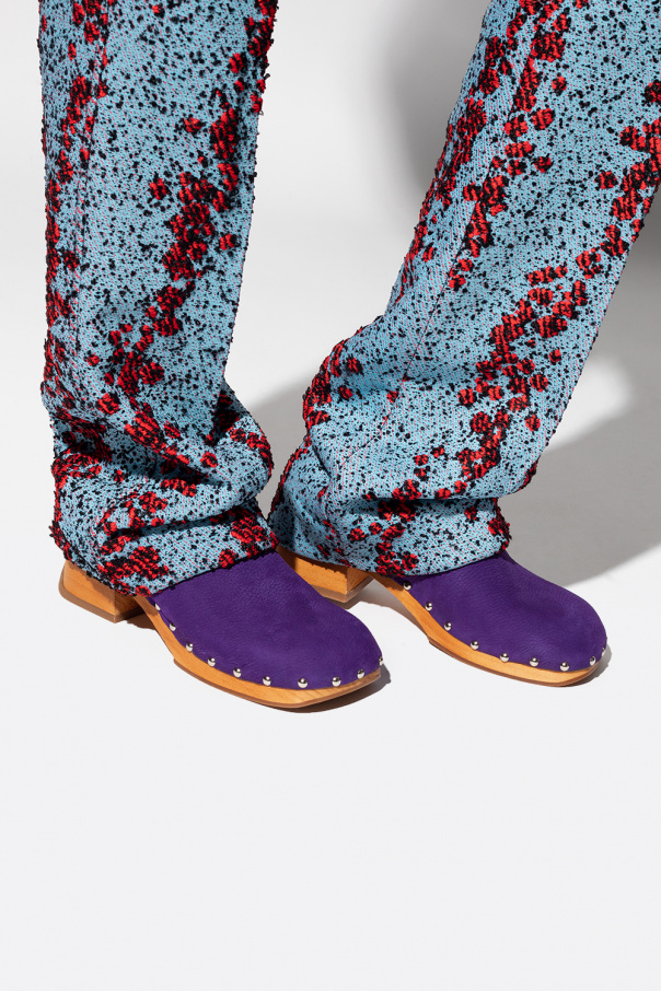 Purple ‘Allison platform slides from Miista. Crafted from nubuck, this pair sits on a brown rubber sole and features silver-tone metal hardware.