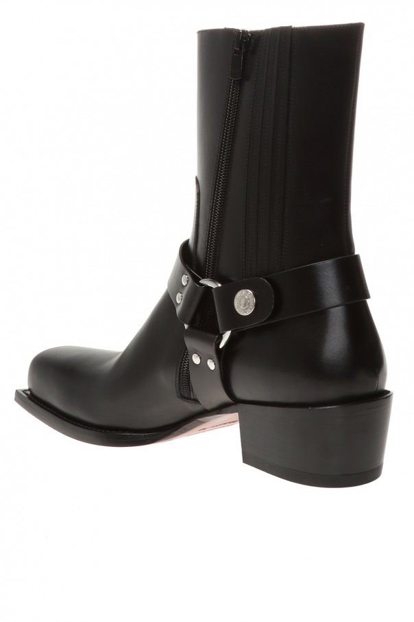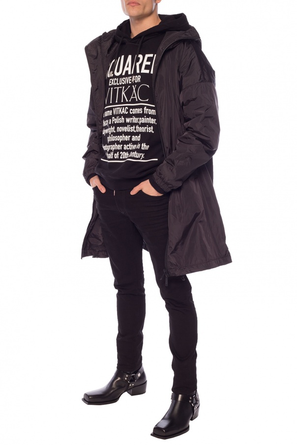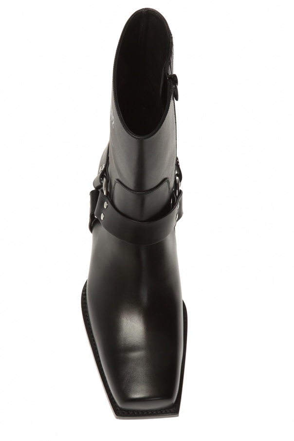 Black heeled ankle boots from Dsquared2 x Vitkac, limited ‘Exclusive for Vitkac’ collection. Made of leather. Zip fastening on the side. Decorated with a white logo print. Brown leather sole.