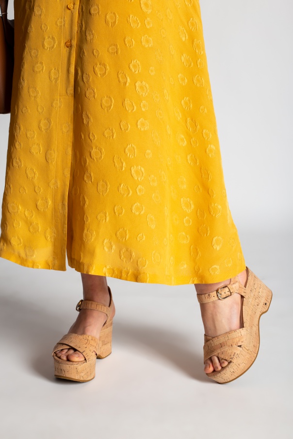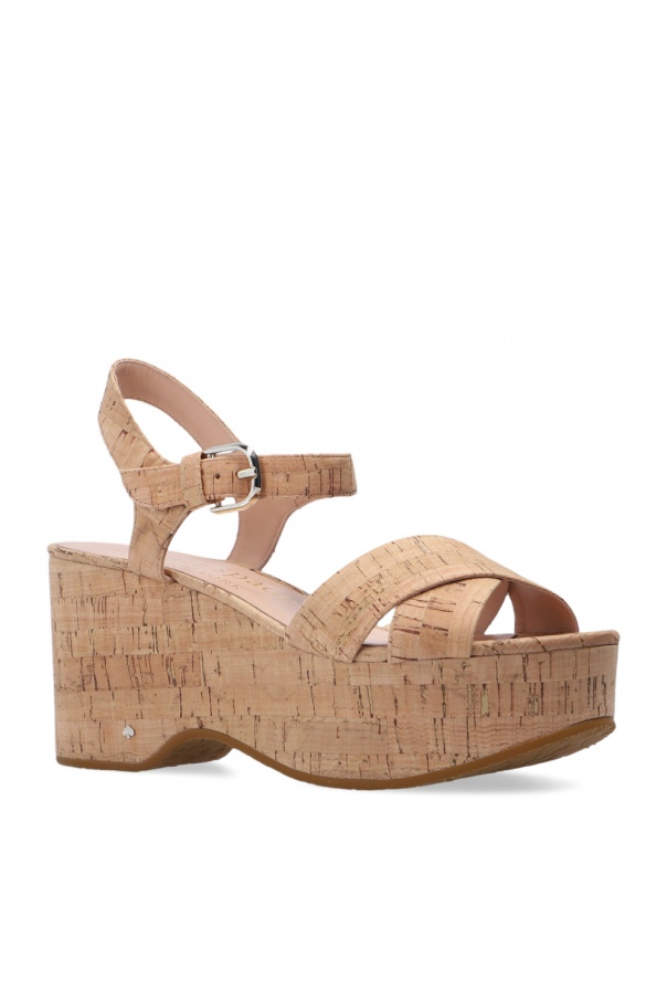 Brown ‘Jasper’ platform sandals from Kate Spade. Set on a brown rubber sole, this pair fastens with a buckled ankle strap.