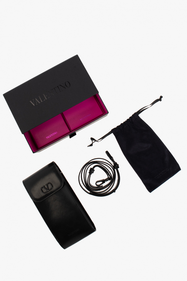 Black sunglasses from Red Valentino. Embossed with a logo pattern, this pair has dark grey lenses with 100% UVA/UVB protection. Comes with a case.