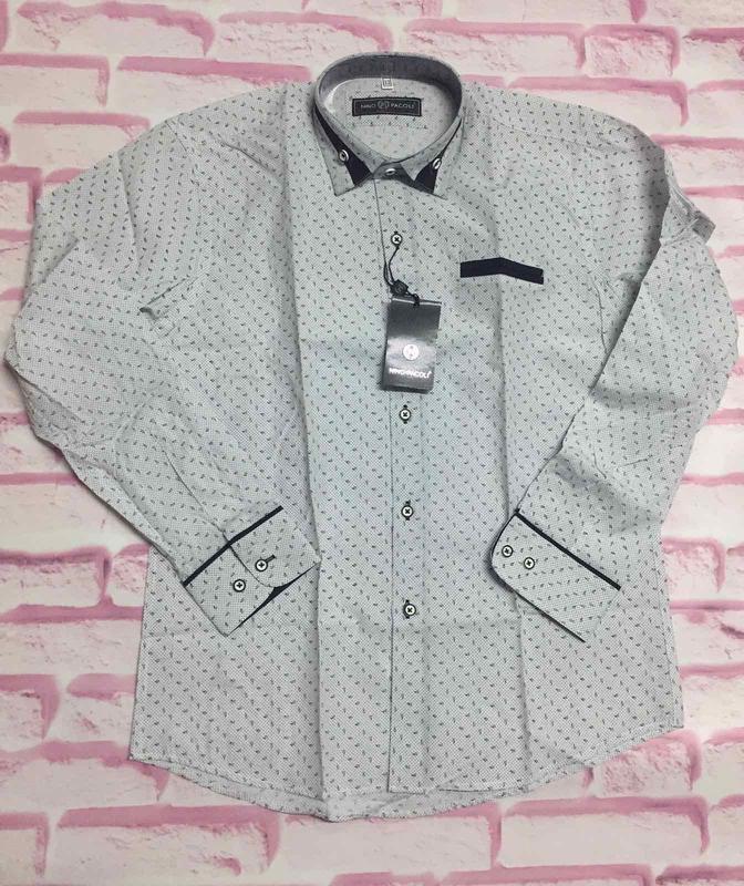 Детские рубашки 100% хлопок, рукав подворачивается до 3/4 и фиксируется пуговицей.