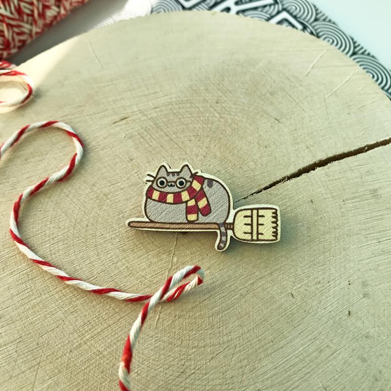 Дерев'яний значок "Кіт Пушин Гаррі Поттер" - чудовий сувенір для любителів