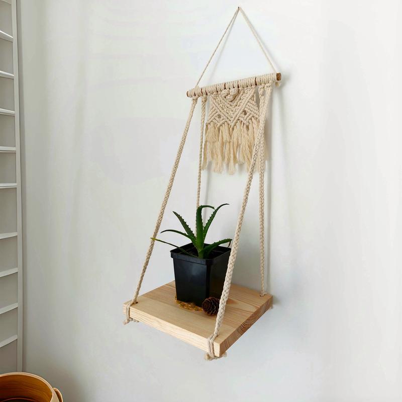 Ищете уникальный способ украсить свой интерьер? Эта подвесная полочка, изготовленная вручную в технике макраме, станет идеальным решением!