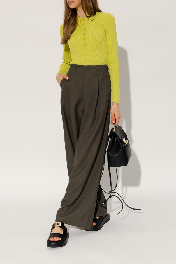 Black ‘Zoe’ slides from Furla. Made of leather, this model sits on a black rubber sole and features gold-tone logo hardware on the front.