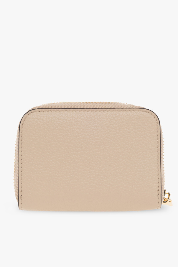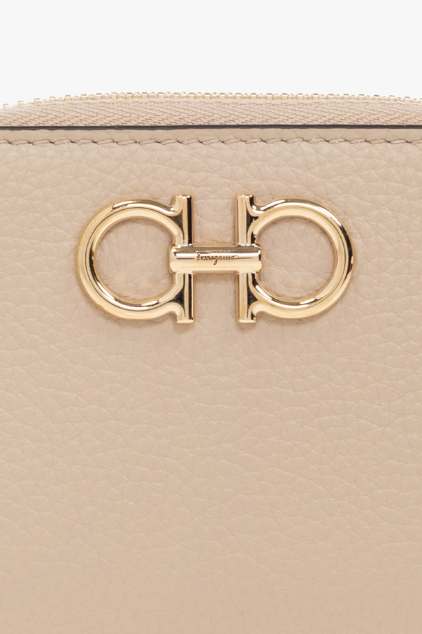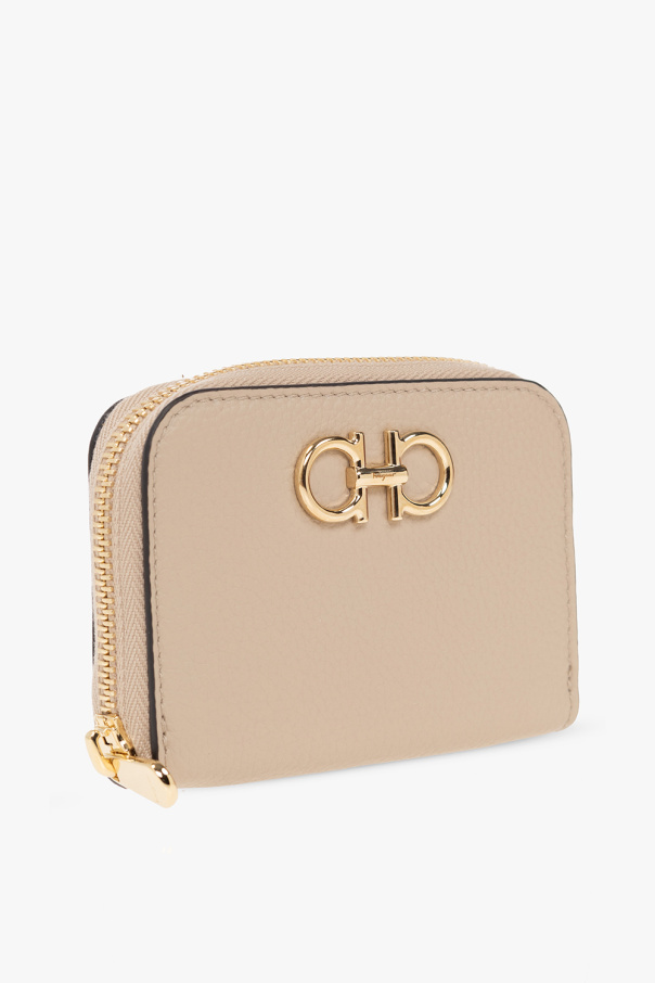 Beige wallet from FERRAGAMO. Made of leather, this item features zip-around fastening, the brand’s signature Gancini detail, two pockets, three card slots and gold-tone metal hardware.