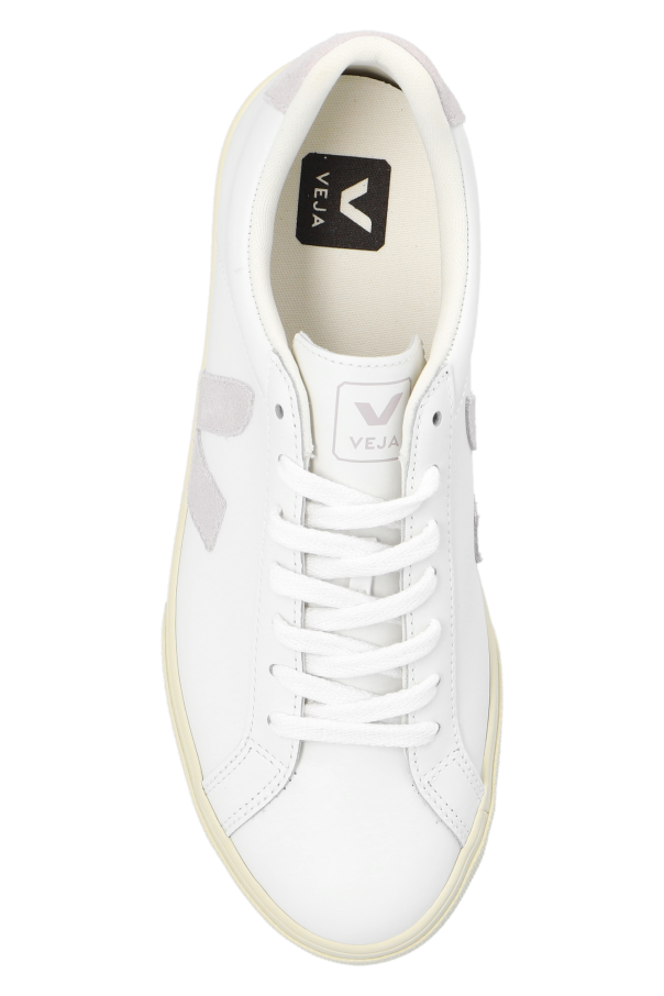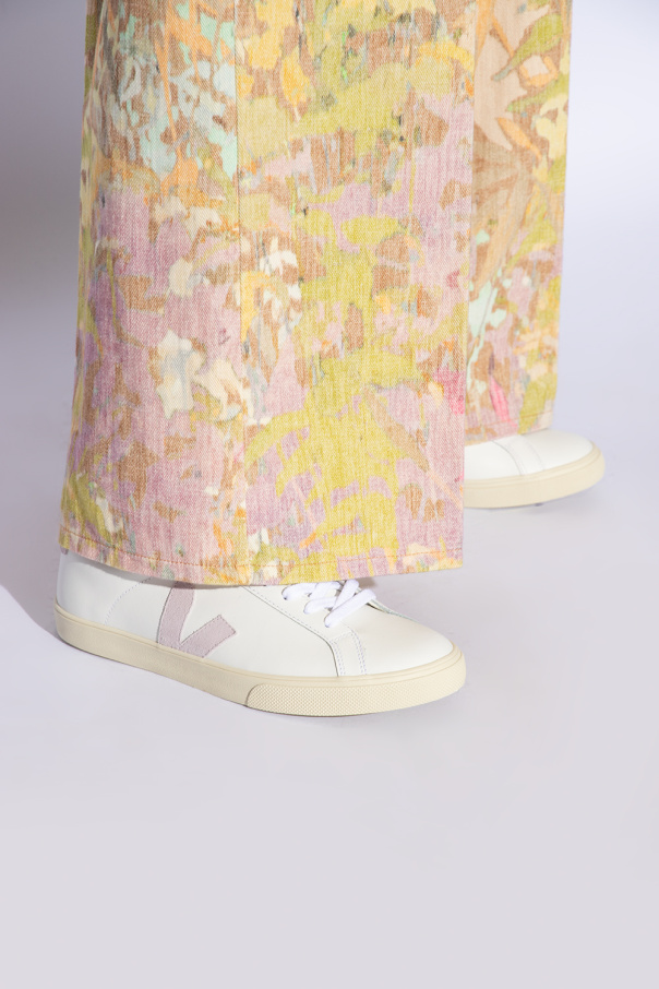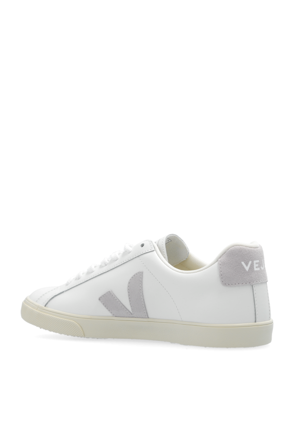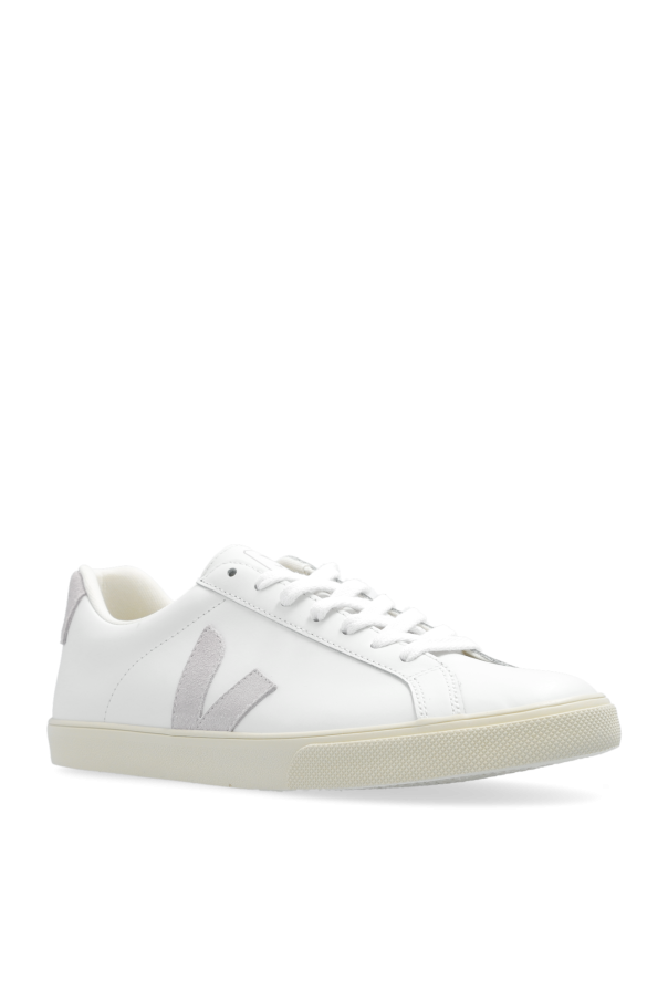 White ‘Esplar Logo Leather’ sneakers from Veja. Made of chrome-free leather, this pair features organic cotton shoelaces, logo patch and heel counter in light purple and recycled fabric lining. The insole is made from Amazonian rubber, sugar cane, recycled EVA and organic cotton. The cream sole is crafted from Amazonian rubber, recycled rubber, silica mineral and synthetic rubber. The bovine leather comes from farms in Uruguay, a country known for its culture of animal husbandry and the quality of its leather. It is tanned in Brazil, respecting the REACH norms. Crafted from soft and lightweight chrome-free bovine leather that comes from farms located in the south of Brazil (Rio Grande do Sul), it undergoes an innovative innovative tanning process where no chrome, heavy metals or dangerous acids are involved. By simplifying the tanning process, the use of chemicals and energy is limited, the use of water is reduced by about 40% and the use of salt by 80%. After tanning, the water is recyclable.