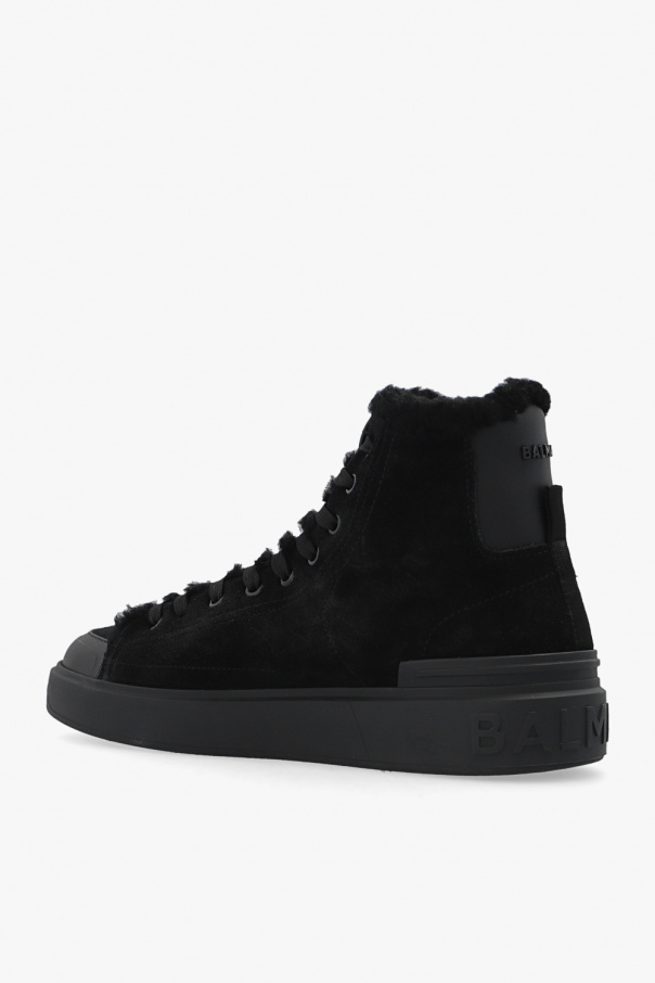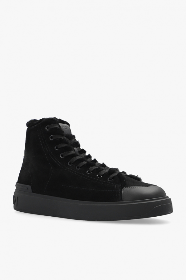 Black ‘B-Court’ insulated high-top sneakers from Balmain. Crafted from suede, this lace-up pair is complete with a logo detail and black rubber sole.