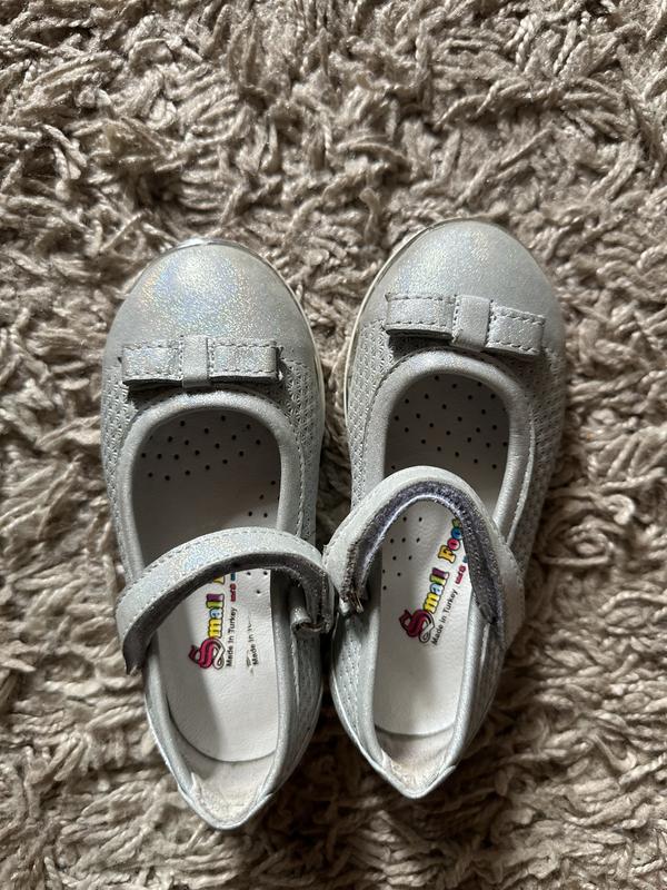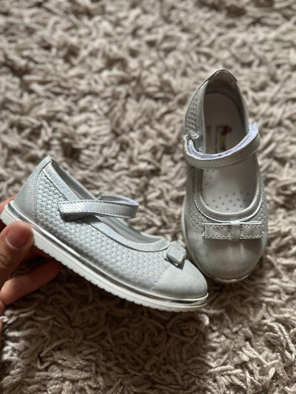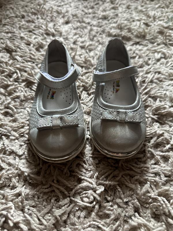 Детские кожаные туфельки для девочки – голубые перламутровые.