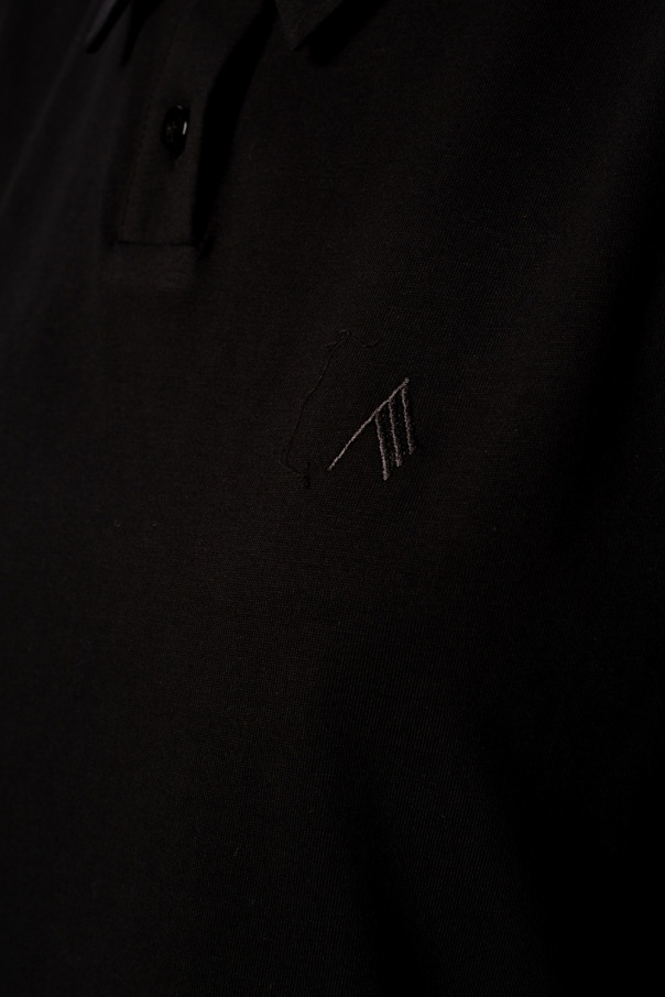 Black polo shirt from The Attico. Crafted from cotton, this design features a black logo embroidery and padded shoulders.