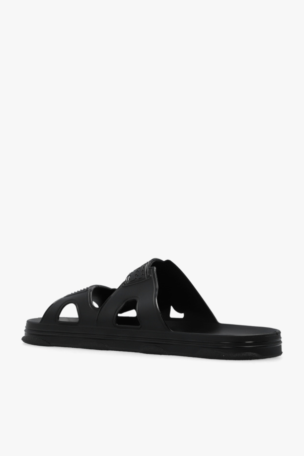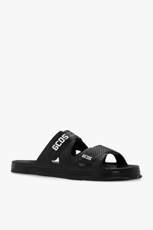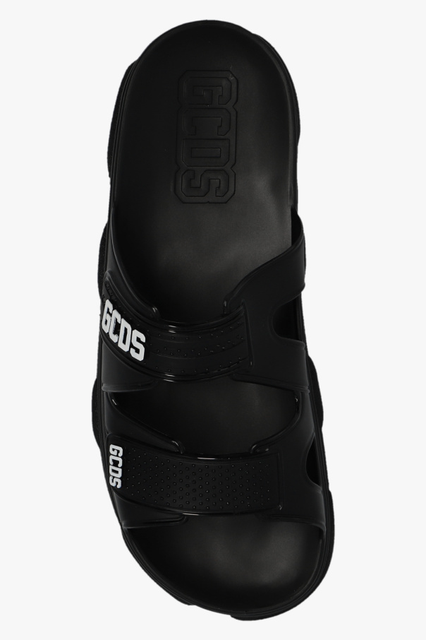 Black slides from GCDS. Made of rubber, this model showcases a white logo.
