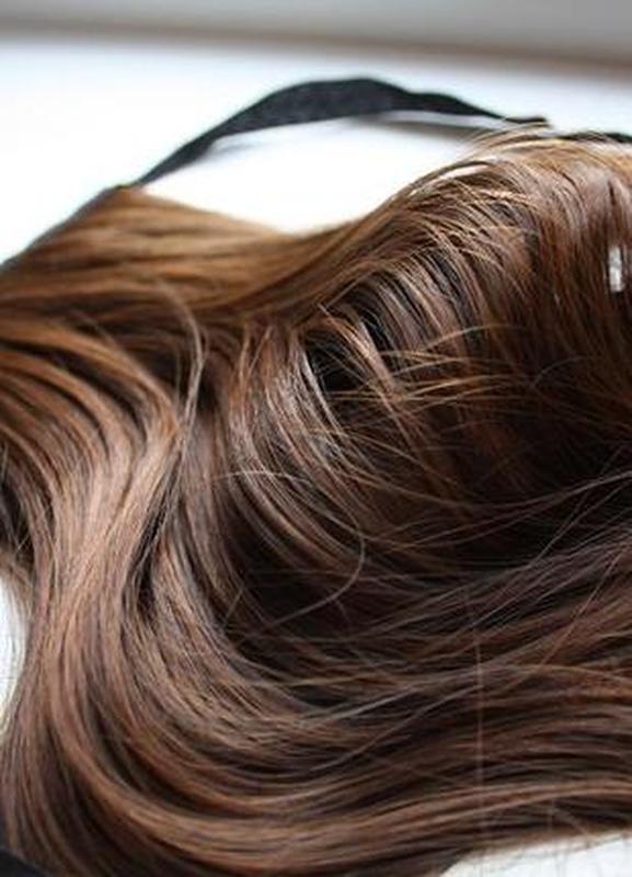 Хвост сделан из высококачественного искусственного материала ТЕРМОВОЛОКНО. Волосы выглядят и на ощупь совершенно как натуральные волосы. Абсолютное отсутствие искусственного блеска. Мягкие и шелковистые прямые волосы. Этот материал выдерживает высокие температуры до 180 градусов. Можно завивать плойкой. Длина хвоста 60 см. В основании хвоста есть гребешок для дополнительного крепления. Свои волосы стягиваем в хвост. Сверху вставляем гребешок и обвязываем лентами-завязками. Держится крепко. Цвет- темный каштан.