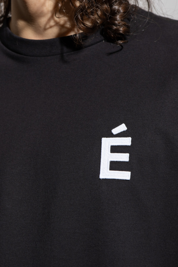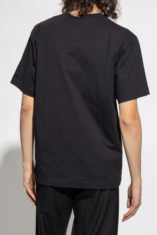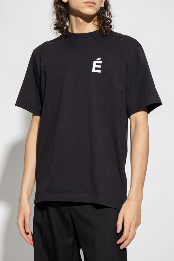Black crewneck T-shirt from Etudes. Crafted from organic cotton, this style features short sleeves, an elasticated collar and a white graphic print with the brand\'s logo.