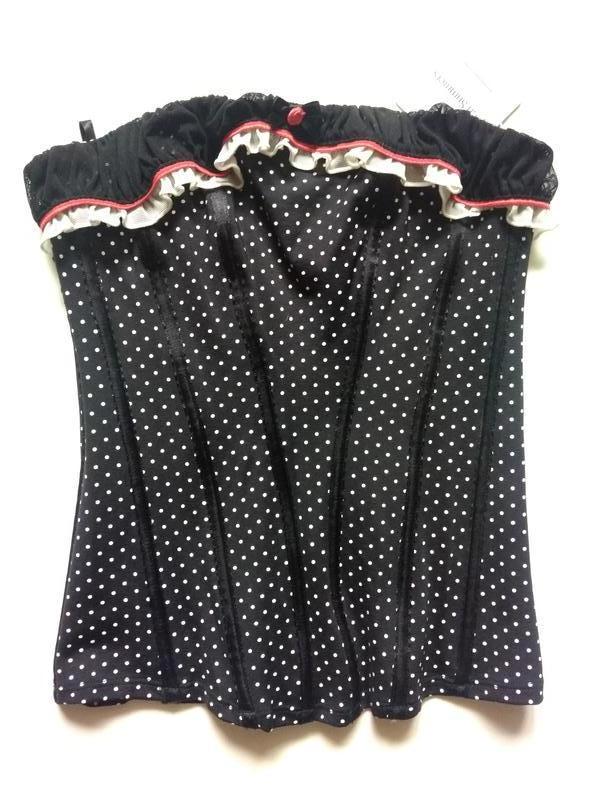 потрясающий корсет в стильный кокетливый мелкий горошек, украшен тюлю черного и белых тонов, в центре красуется бантик с розочкой вдохновляет женственный утонченный дизайн,разработан из приятной мягкой, дышащей микрофибры.