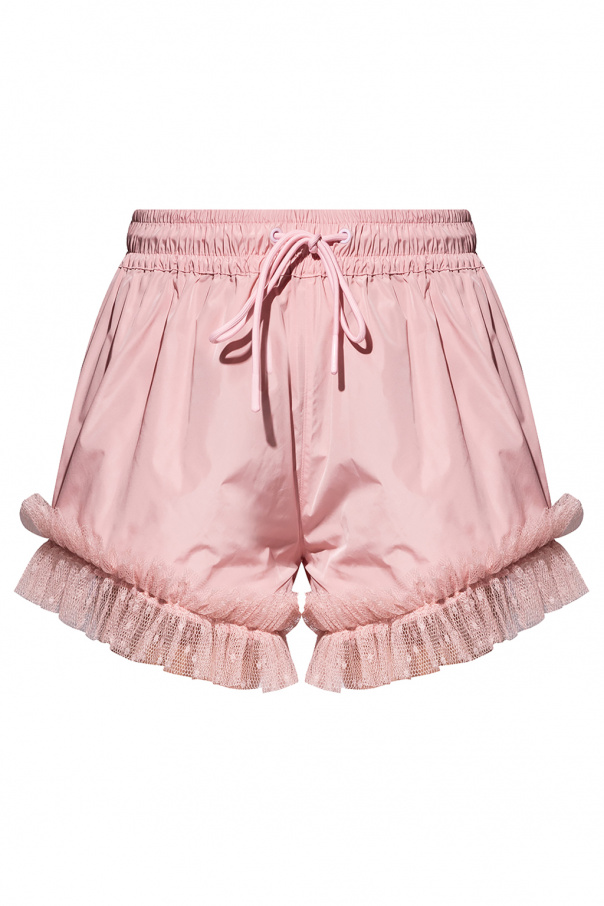 Light pink shorts from Red Valentino. Enriched by a tulle ruffle at the hems, this pair features a drawstring waist and two slip pockets.