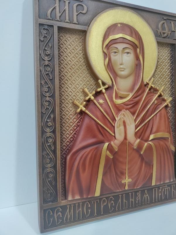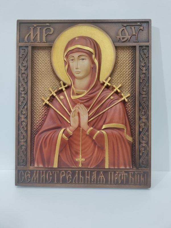 Ікона Божої Матері Семистрільна - унікальний подарунок будь-якому християнину. Родинний дарунок на сімейні свята, друзям та знайомим з будь-якого іншого приводу. Можна помістити на стіну в тому місці де ви розмовляєте з Богом.