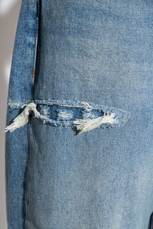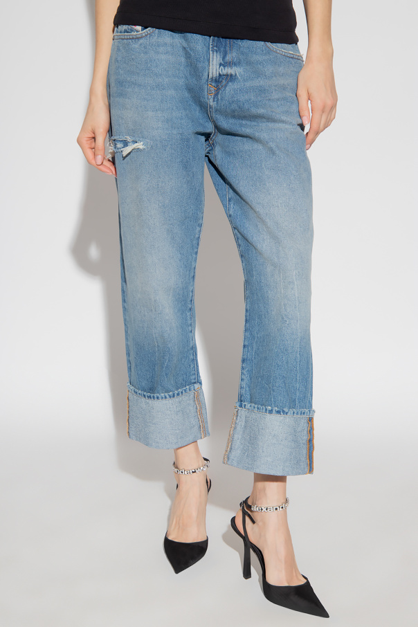 Blue \'1999 L.32\' jeans from Diesel. Crafted with a vintage effect, this pair falls with cropped, straight legs and features a zip fly with a button, classic five pockets, rolled cuffs and logo patches on the front and back.