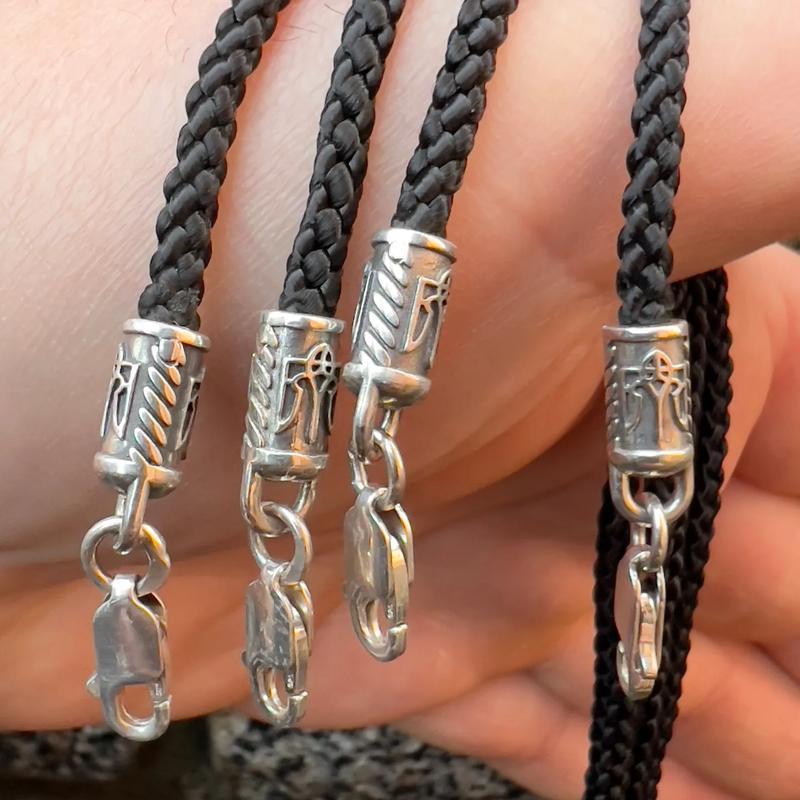 Кілька примірників у наявностіШнурок лавсан з срібними накінечниками та замком