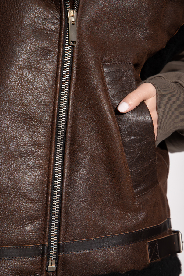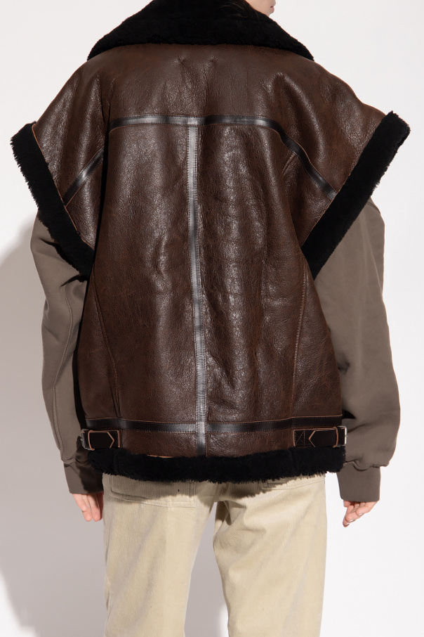 Brown and black loose-fitting vest from Halfboy. Made of sheep leather, this garment features a zip fastening, collar, buckle straps on the sides and two front pockets.