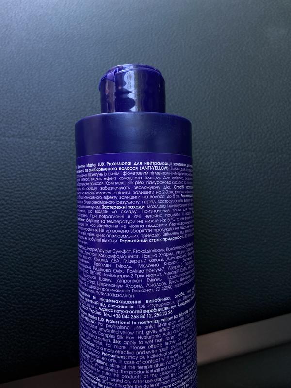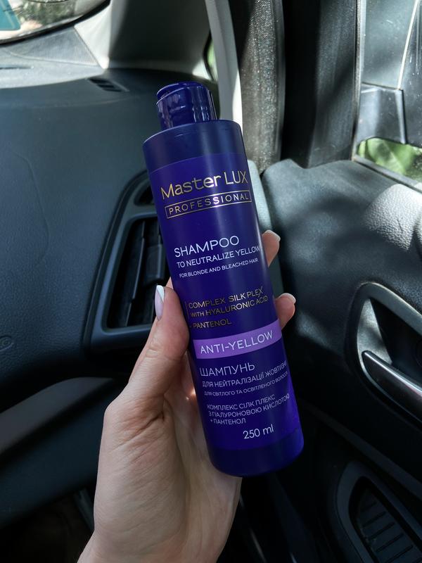 Anti-Yellow Shampoo от бренда Master LUX Professional - этот шампунь нейтрализует желтизну и помогает достичь идеального, равномерного и холодного оттенка в домашних условиях. Таким образом вы оттягиваете очередную процедуру окрашивания и сохраняете здоровое состояние волос. Шампунь обладает питательными свойствами и способен оказывать уход за волосами.