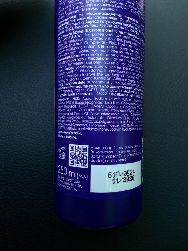 Особенности Anti-Yellow Shampoo от Master LUX Professional: