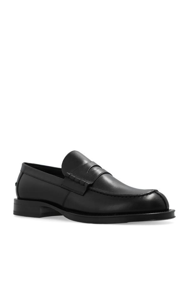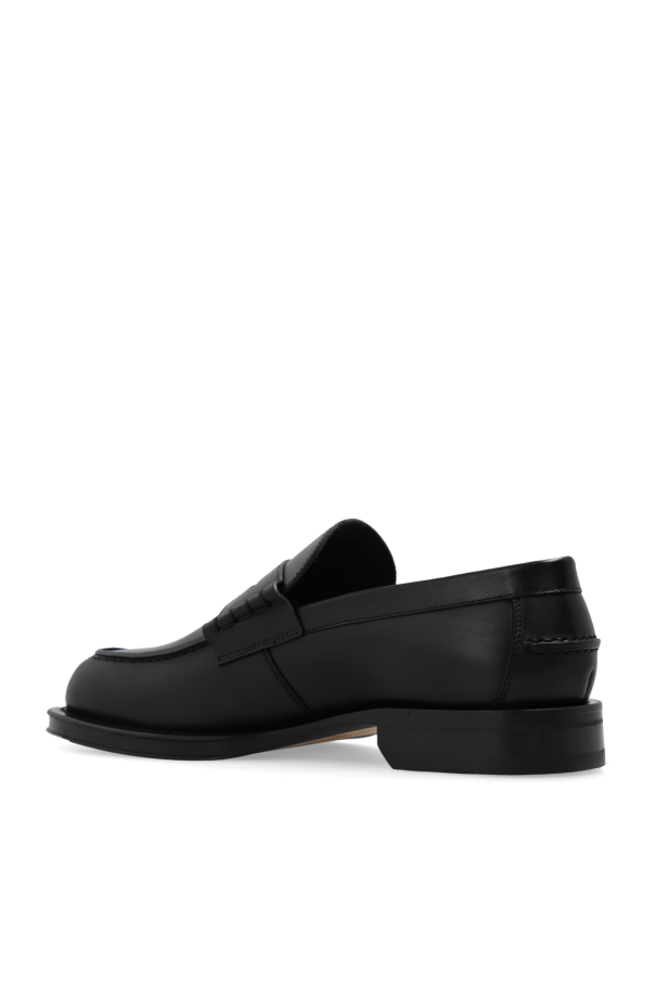 Black \'Medley\' loafers from Lanvin. Made of leather, this model sits on a black leather sole and features a decorative insert on the front.