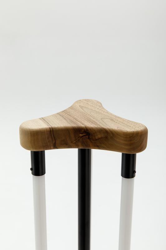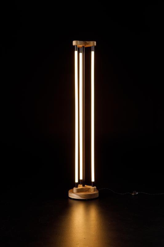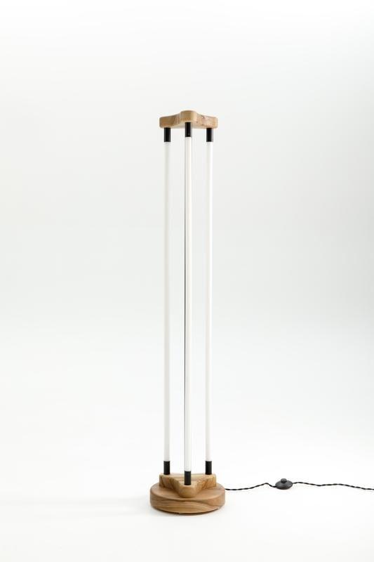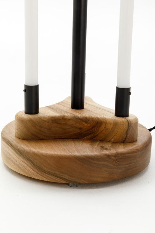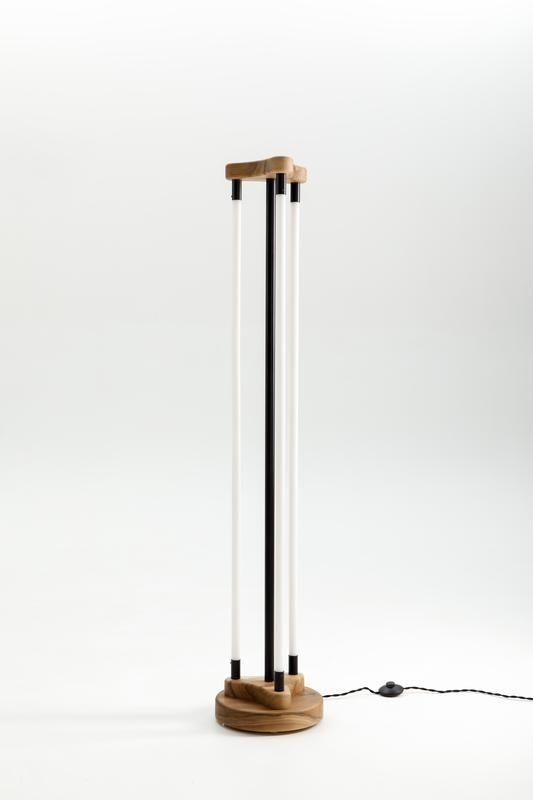 Современный торшер, совмещающий в себе изысканный минимализм и элегантность. Он полностью выполнен из массива натурального ореха и металлической (черной) трубки.