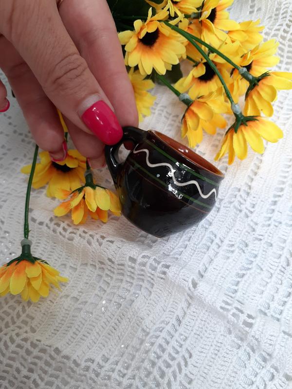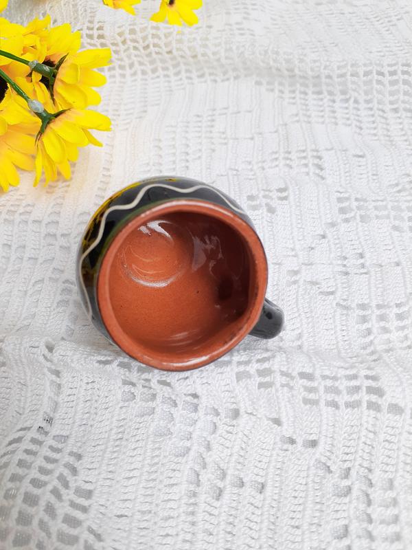 Простая форма горшочка с миниатюрной ручкой, естественный цвет глины, лаковая глазурь, ручная орнаментальная роспись!