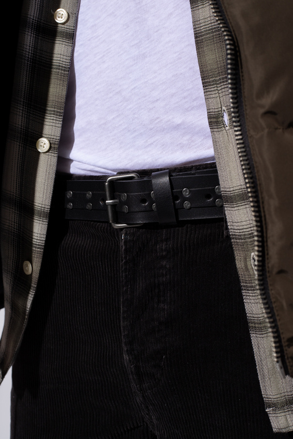 Black ‘Shane’ belt from AllSaints. Made of buffalo leather, this item features silver-tone metal hardware.