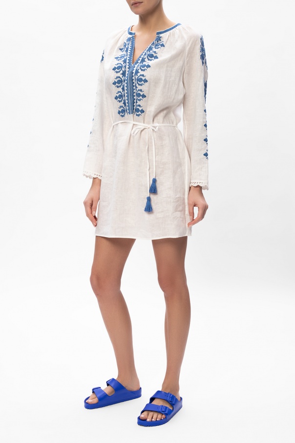 Navy ‘Arizona Eva’ slides from Birkenstock. Resting on a navy rubber sole, this model has stripes with logo-embossed buckles.