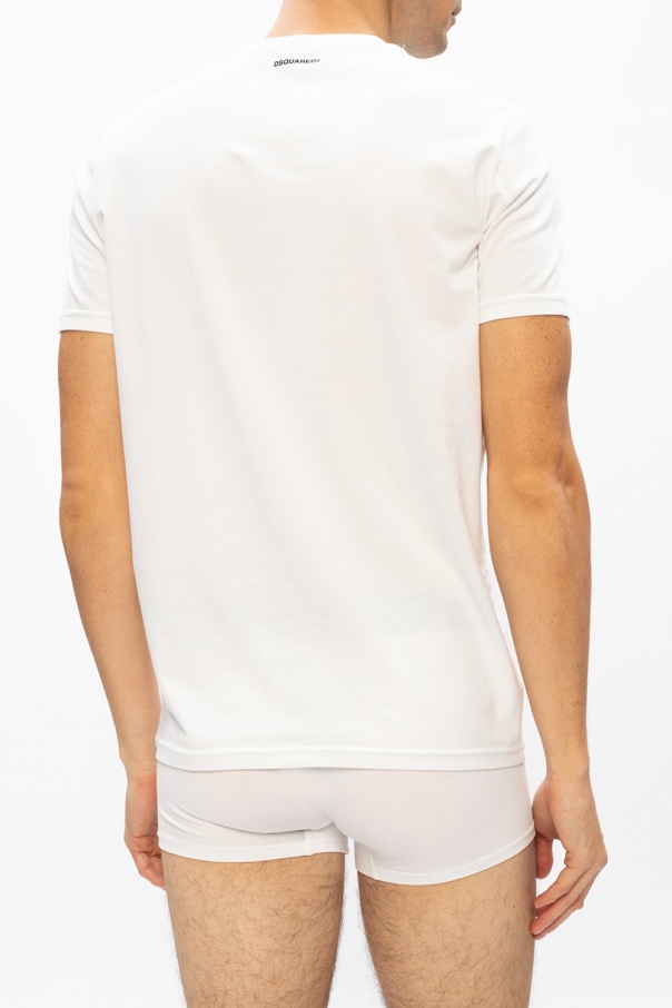 Black crewneck T-shirt two-pack from Dsquared2. Crafted from stretch cotton, they feature body-hugging fit.