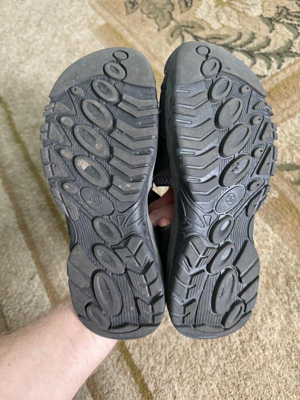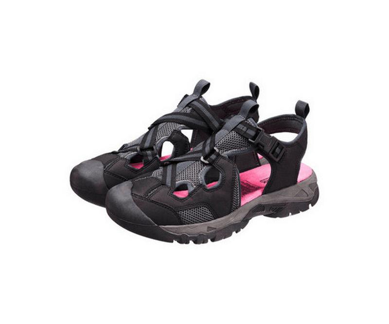 Устойчивая протекторная подошва. Застежка-карабин. Закрытый носок.