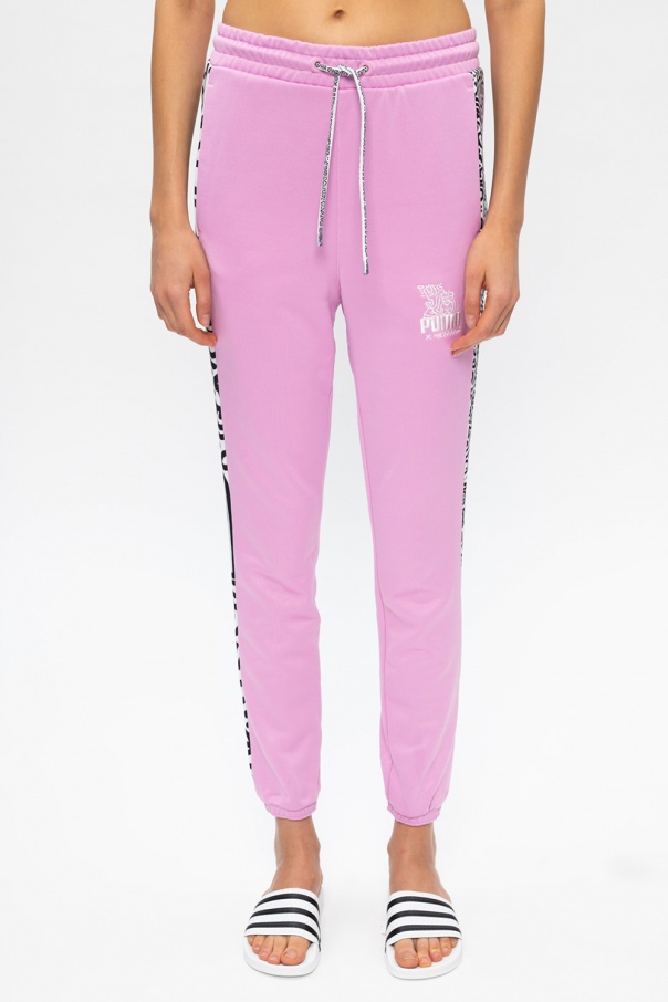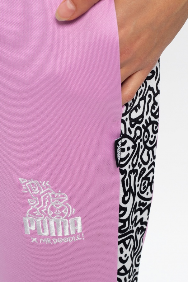 Purple sweatpants from Puma x Mr Doodle. Fastened with drawstrings, this style features prints by Sam Cox, also known as Mr Doodle, as well as two slip pockets and ribbed cuffs.