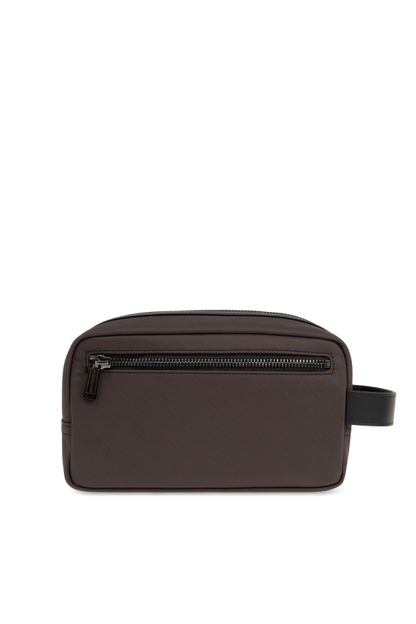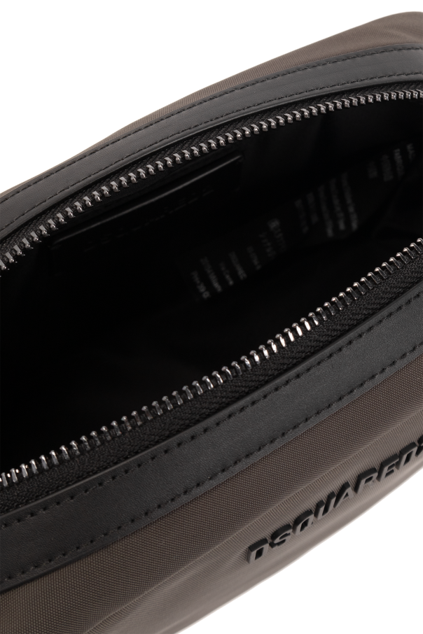 Dark grey wash bag from Dsquared2. Embellished with a logo application, this design features a zip fastening, one half-round handle, silver-tone metal hardware and one internal compartment.