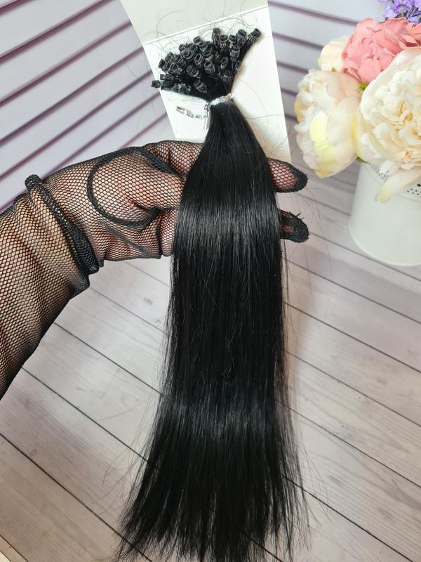 Набор из натуральных словянских волос очень мягкие тонкие цвет черный.Длинна на фото вес 50грамм.
