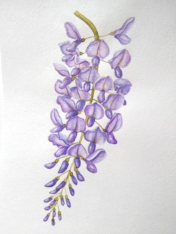 Watercolor painting Wisteria.
