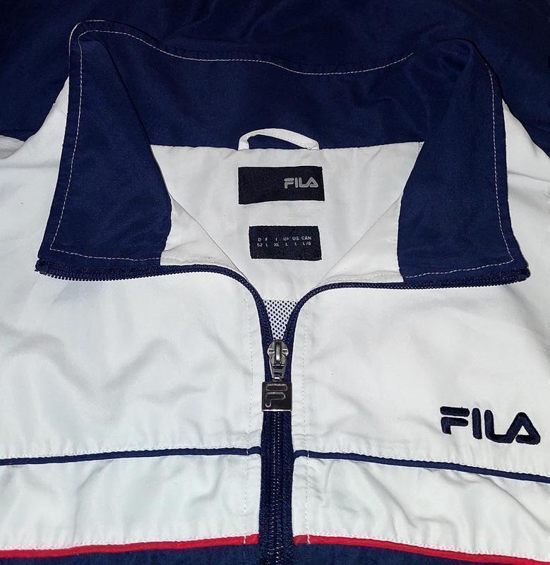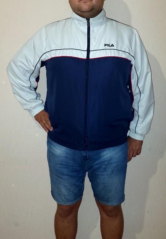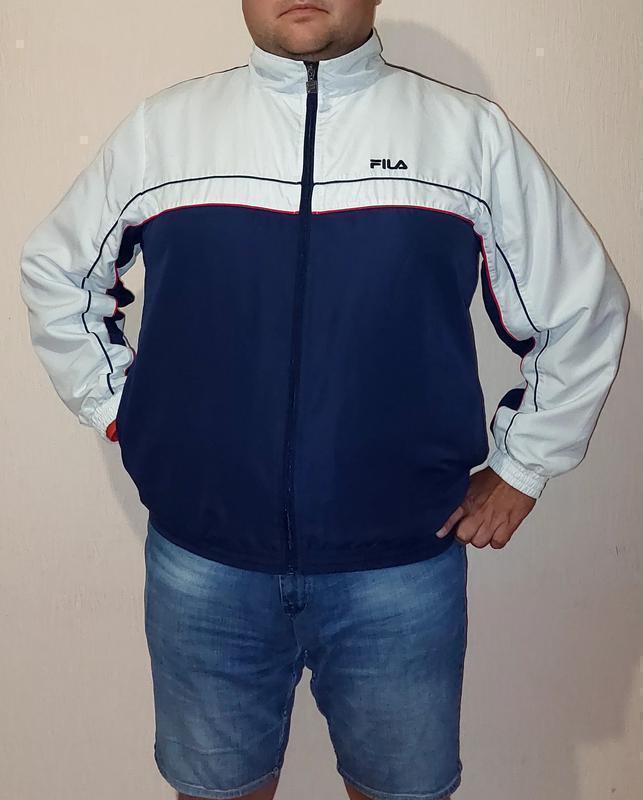 Шикарная олимпийка синего цвета в белую полоску FILA. Прямой крой. На груди вышит фирменный логотип бренда. По бокам 2 кармана. Рукава и низ на резинке. Внутри сетчатая подкладка. Фирменная гарнитура.