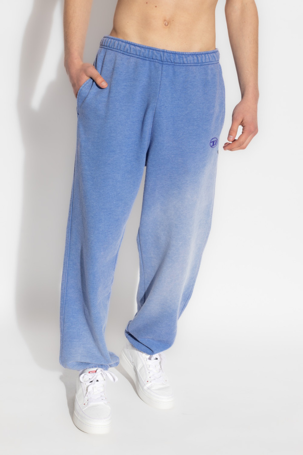 Blue ‘P-MARKY’ sweatpants from Diesel. This pair features an elastic drawstring waistband, logo detail, two front pockets, one back pocket, ribbed cuffs and vintage effect.