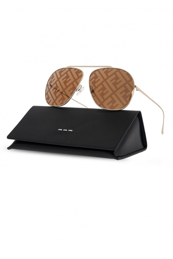 Gold-tone sunglasses from Fendi. Crafted from metal, this pair employs certificated brown lenses with UVA/UVB protection and etched logo.