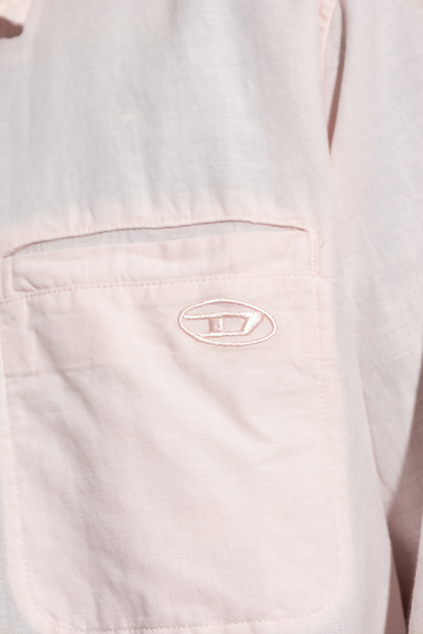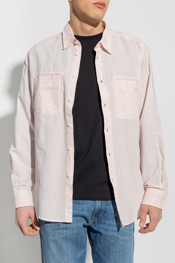 Pink ‘S-OMAR’ shirt from Diesel. Embroidered with a logo motif, this style features button fastenings, two slip pockets and long sleeves with cuffs.