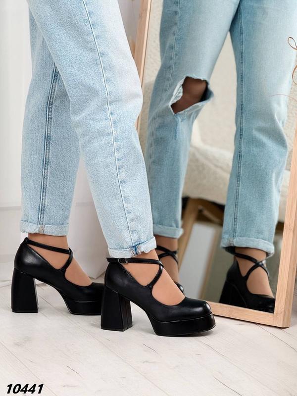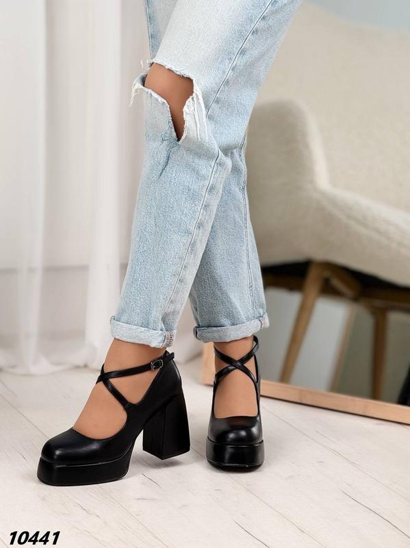 Туфлі Матеріал еко-шкіра Колір чорний Висота каблука 10 см Стильні та зручні На вузьку і середню повноту ніжки заміри по факту примірки🛒Розмірна сітка:
