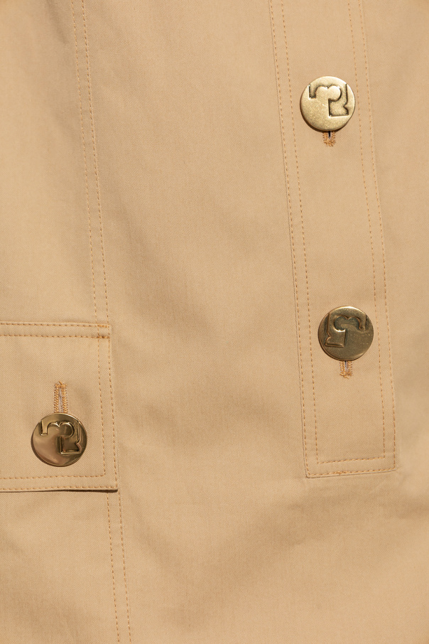 Brown \'Camp\' dress from Tory Burch. Made of cotton, this style fastens with buttons on the front and features shoulder epaulettes, short sleeves and two buttoned pockets on the front.