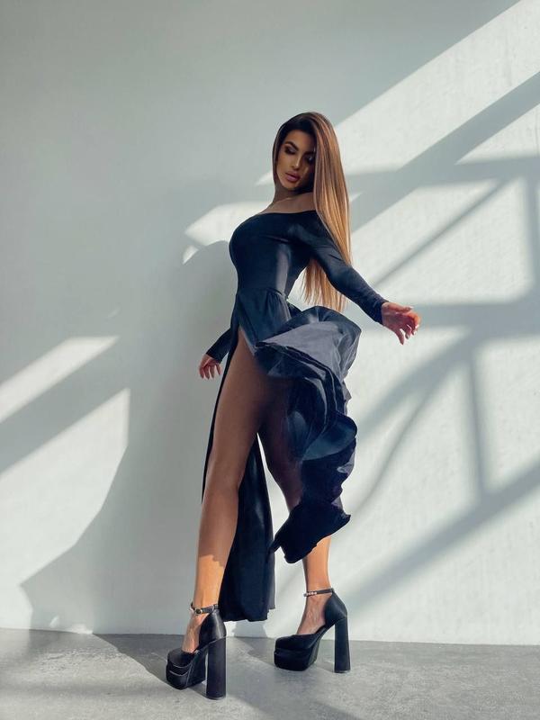 Фото реалРозкішна сукня з розрізами та відкритими плечима. В цій сукні ви точно будете у центрі уваги