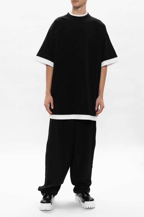 Black ‘Strike’ combat boots from Balenciaga. Crafted from leather, this lace-up pair is set on a massive platform rubber sole in white.