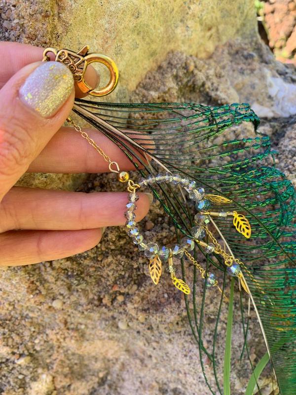 Подвеска ручной работы с натуральным пером павлина и чешским стеклом. Фурнитура - бижутерный сплав. Можно использовать как закладку в книгу. А благодаря застежке - крупному карабину можно повесить как декор в машине или в квартире.