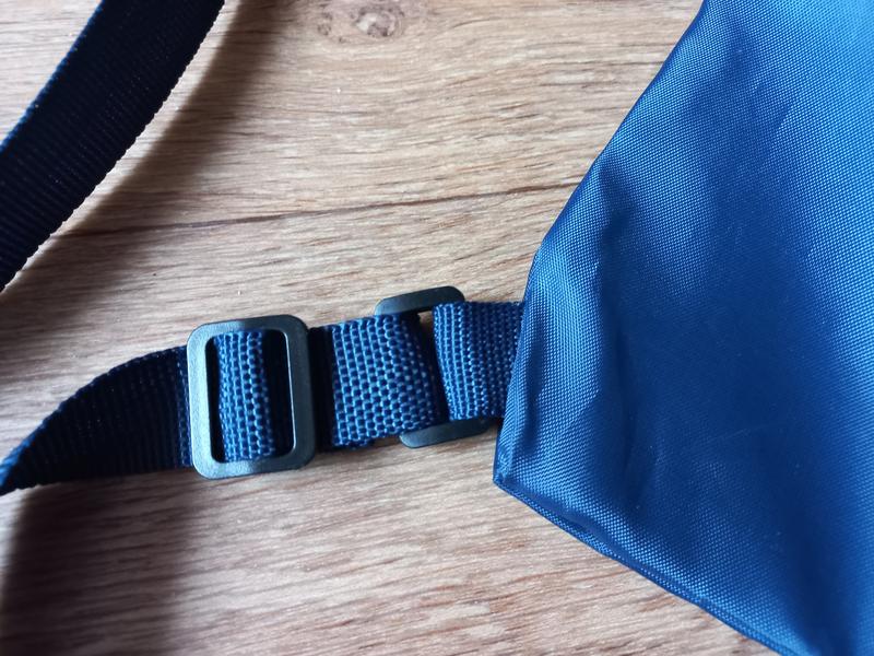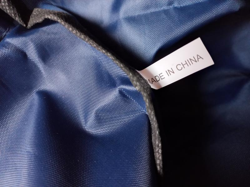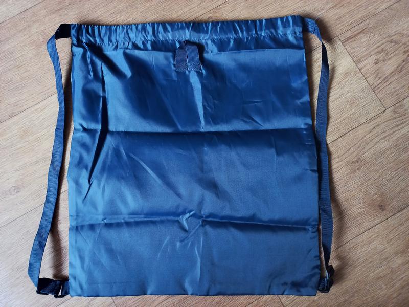 Рюкзак в состоянии нового, в носке не был. Никаких ньюансов не имеет. Ткань типа плащевки, синтетический материал. Ткань не совсем тонкая. Цвет тёмный синий, надпись белая. Лямки-затяжки, длина регулируется. Одновременно служат затяжкой для верха и лямками для ношения. Размер в разложенном состоянии примерно 48,5 см х 43 см.