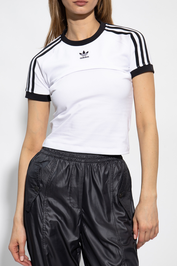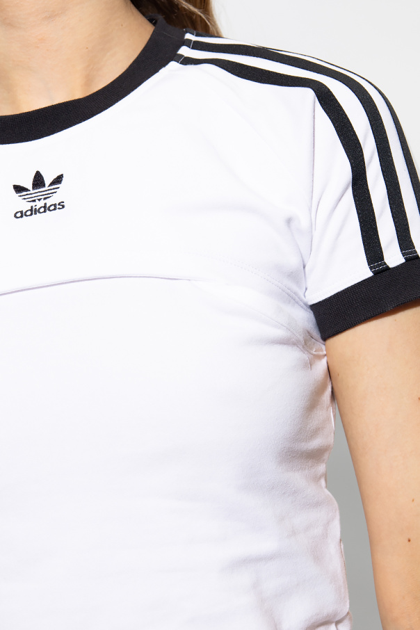 White and black two-layered top ADIDAS Originals. Made of cotton, this design is decorated with a logo embroidery and the brand's signature three stripes. It consists of a crewneck crop top with short sleeves over a crewneck tank top.