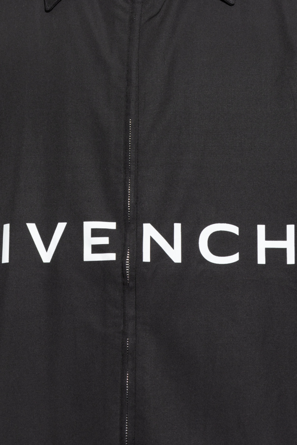 Black shirt from Givenchy. Made of cotton, this garment is complete with a zip fastening, white logo print and long sleeves with ribbed cuffs.