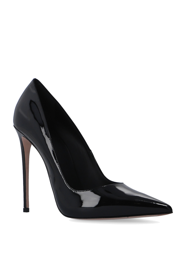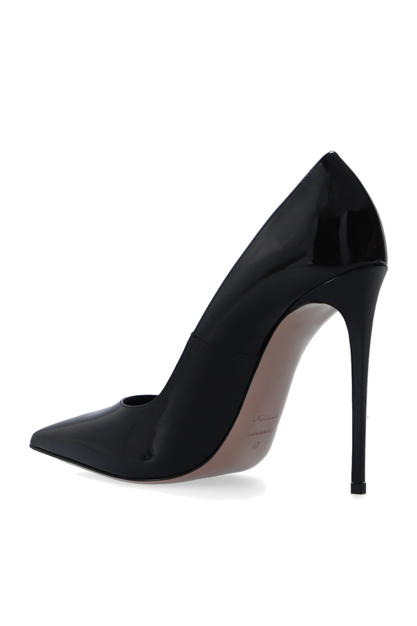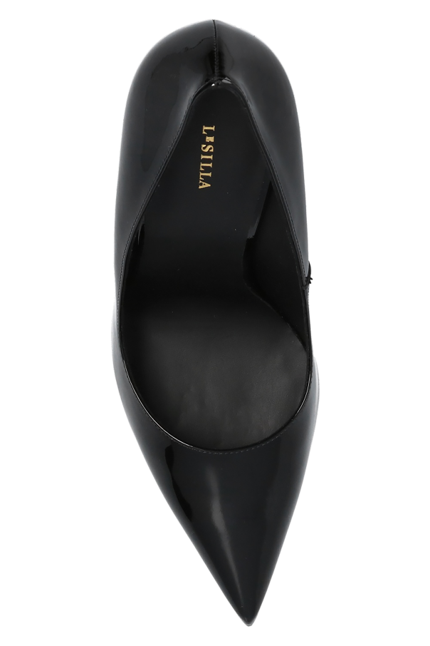 Black ‘Eva’ stiletto pumps from Le Silla. Crafted from patent leather, this pair features pointed toe and beige leather sole hardened with rubber insert.
